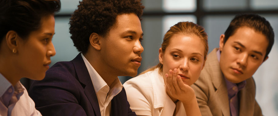 - Scherpe humor tijdens vergaderingen. Wie steeds het mikpunt is, lacht vaak mee om erbij te blijven, maar voelt zich van binnen onveilig.